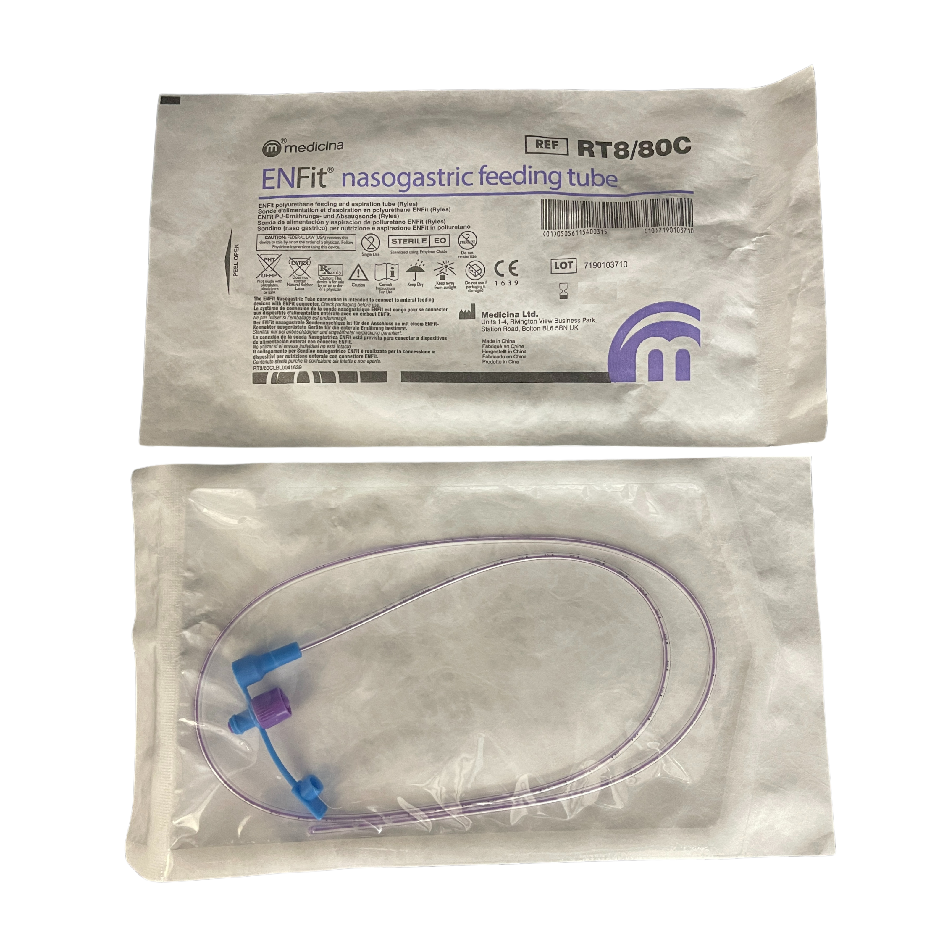 This range of tube is designed to aspirate stomach contents in adults and children, similar to a “ryles” type tube. The tube characteristics also permits the tube to be used as an ENFit feeding tube. They have a funnel or bladder type connector to fit suction equipment and an ENFit connector to fit enteral syringes and the female ends of pump administration sets.