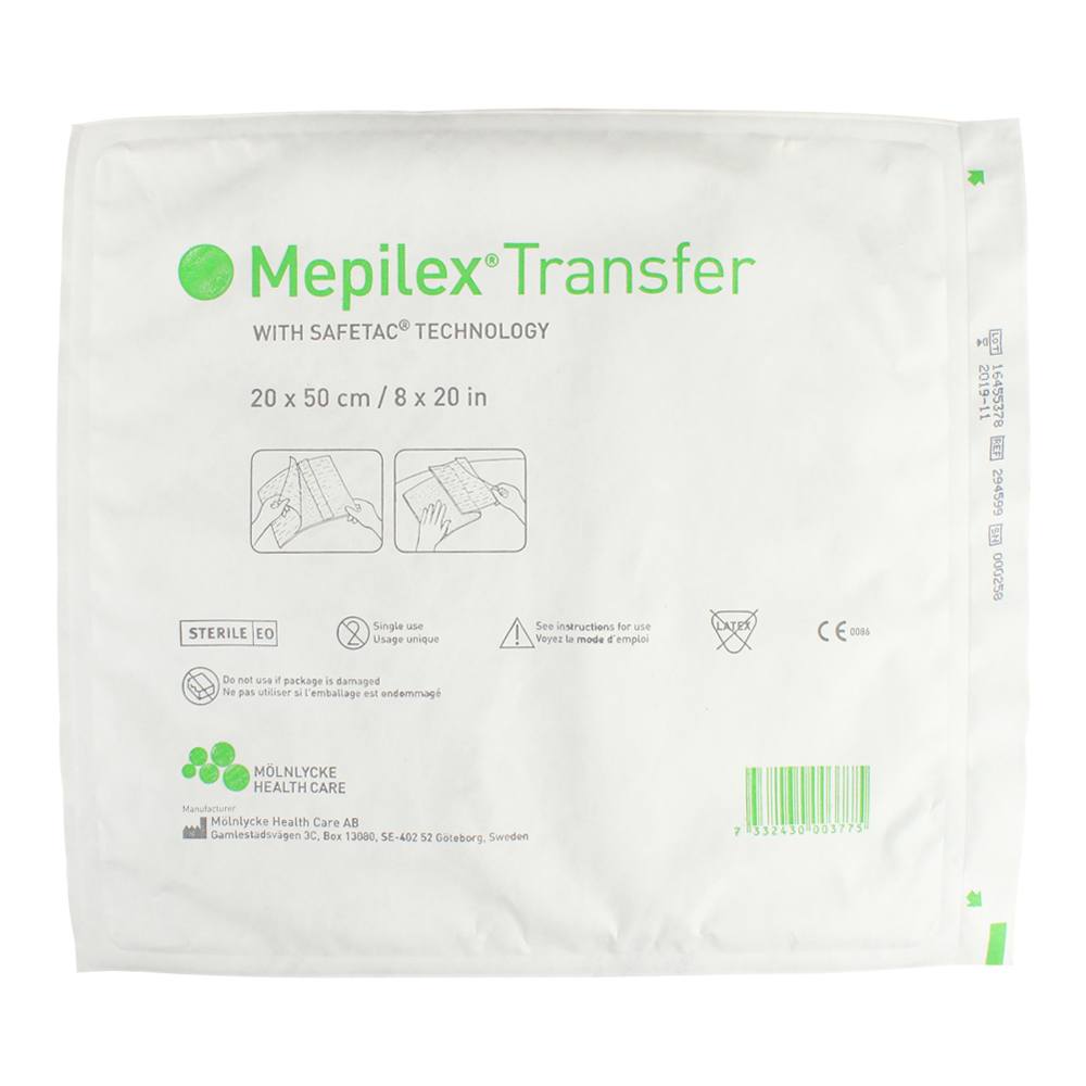Mepilex® Transfer is a soft silicone exudate transfer dressing intended for a wide range of exuding wounds. It can also be used as protection of compromised and/or fragile skin. Mepilex Transfer efficiently transfers exudate away from the wound thereby minimising the risk of maceration It maintains a moist wound environment in combination with an appropriate secondary dressing