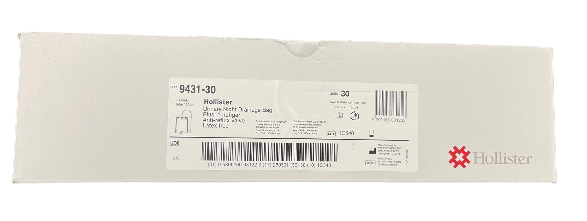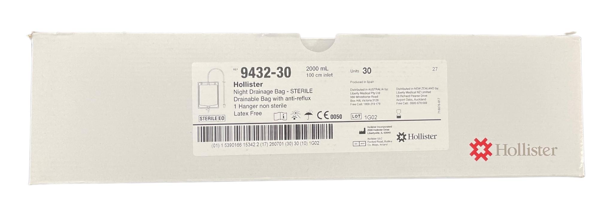 Each box of the Hollister Urinary Night Drainage Bag includes 1 bed hanger, providing a practical storage solution. The bed hanger can be easily attached to the bed frame, ensuring that the bag is securely stored and easily accessible.