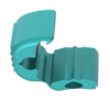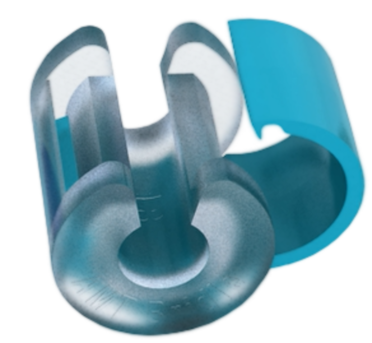 The nasal bridle system has several distinct pieces; a blue retrieval probe, a catheter with removable safety stylet and blue bridle tubing, a pre-attached clip, a removal tool and a lubricant packet. Most of these components serve to thread the bridle into place within the nasopharynx. Once properly inserted, only the soft bridle tubing and device clip remain. The other pieces are discarded.