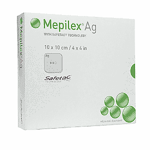 The Mepilex Border Ag Silver Dressing is an absorbent foam bandage coated with proprietary antiseptic silver and produced with Safetac Technology. It can be worn up to 7 days depending on the type of wound and its exudate quantity. The pad has an absorption capacity suitable for low to moderately exuding wounds.