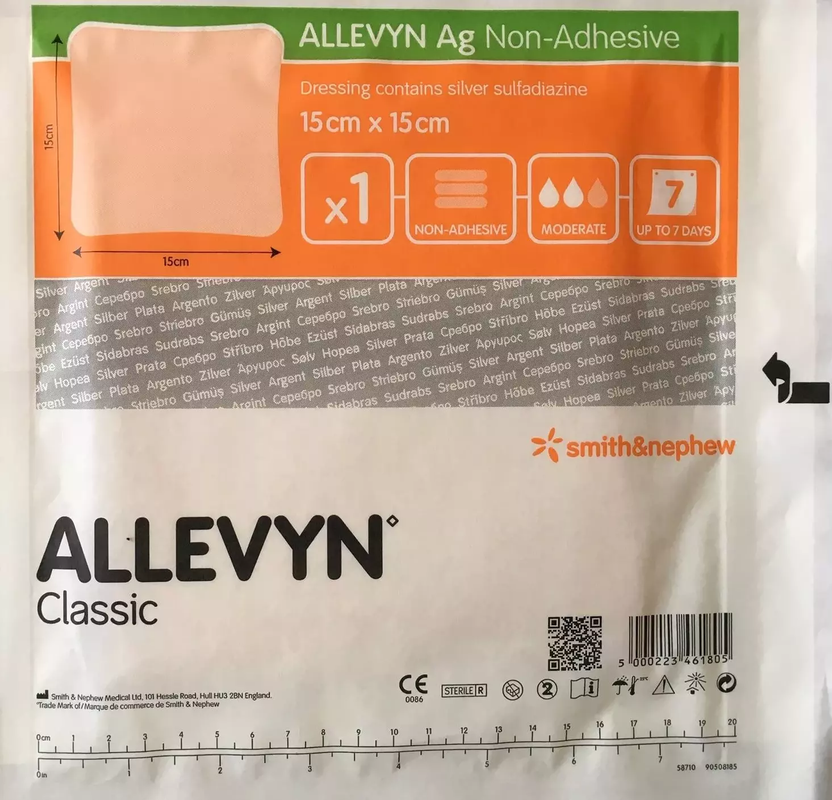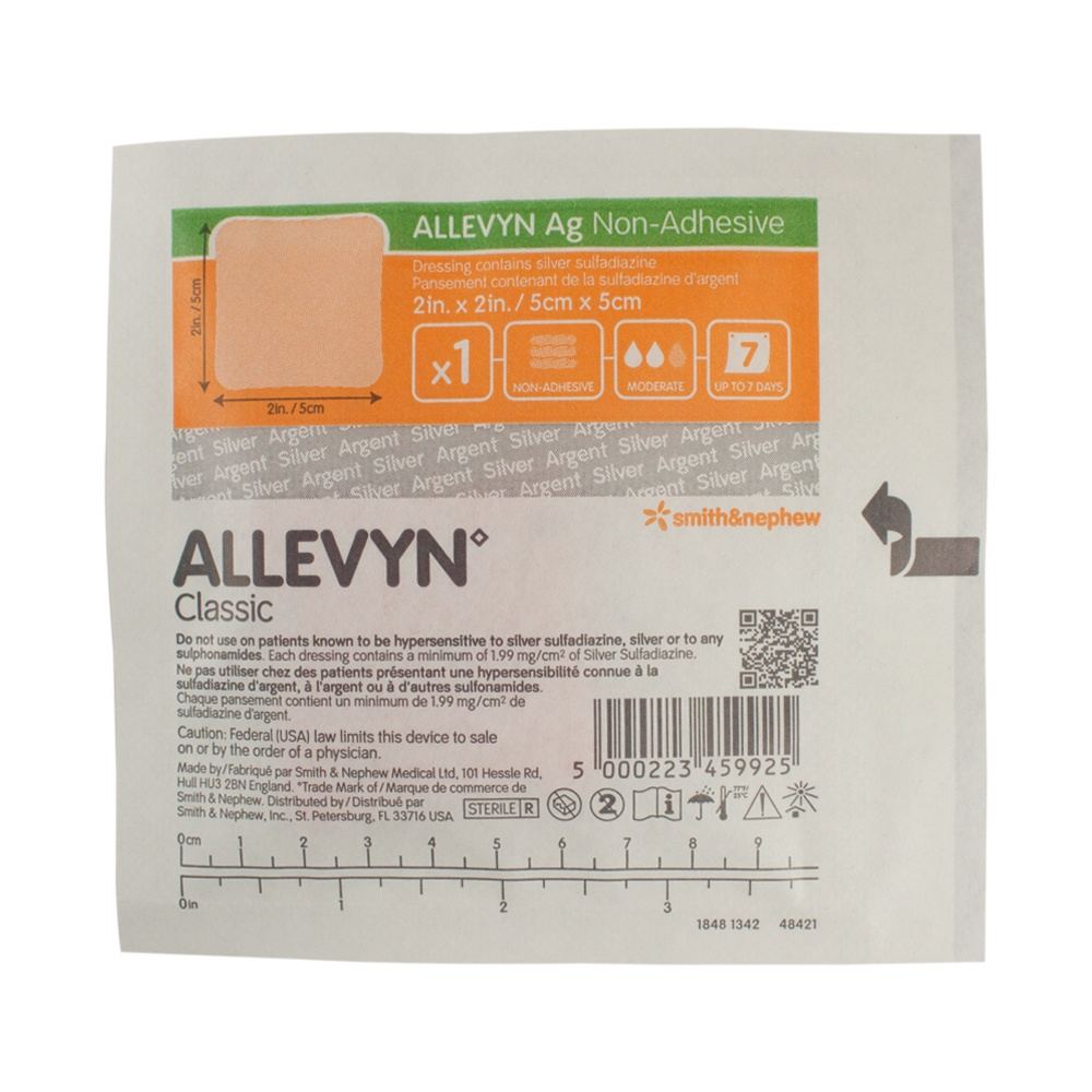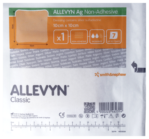 Allevyn Ag Non-Adhesive Dressing is designed for absorbing exudate and managing partially to fully thick wounds including ulcers (venous, arterial, diabetic), pressure sores, donor sites, surgical incisions, surgical excisions and first or second degree burns. Allevyn Ag Non-Adhesive is capable of creating and maintaining a moist wound environment which is an optimal environment for wound management. It is also capable of physically separating the wound and external environment, and consequently acting as a barrier to bacterial contaminations.