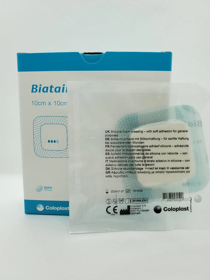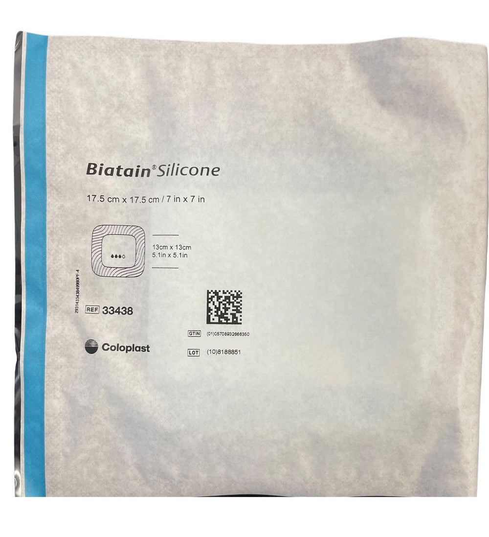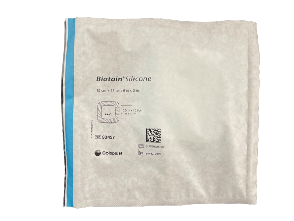 Biatain® Silicone is a soft and conformable polyurethane foam dressing with a semi-permeable, bacteria and waterproof top film, a lock-away layer and a soft silicone adhesive layer.