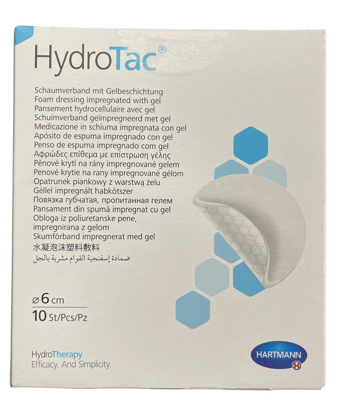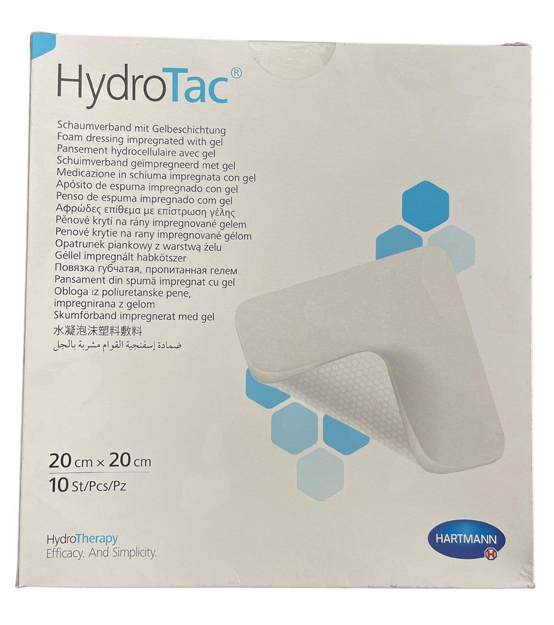 HydroTac is a sterile, single-use, coated foam dressing with a gas-permeable, waterproof and bacteria-resistant outer layer of polyurethane. HydroTac is designed for the treatment of wounds during the granulation and epithelialization phases with low to moderate exudation. The wound-facing surface of the dressing has a mesh structure and is impregnated with a hydrogel that acts as a moisture reservoir. The gel consists of a hydrated polyurea/polyurethane hybrid polymer containing propylene glycol. The gel on the side of the wound-contact layer prevents the dressing from sticking to the wound. It enables an atraumatic dressing change. Due to its structure, HydroTac can absorb wound exudate and release moisture. This provides the necessary moist wound environment which has a stimulating effect on wound healing. The non-border dressing can be cut into the desired size. For fixation please use a suitable secondary dressing.