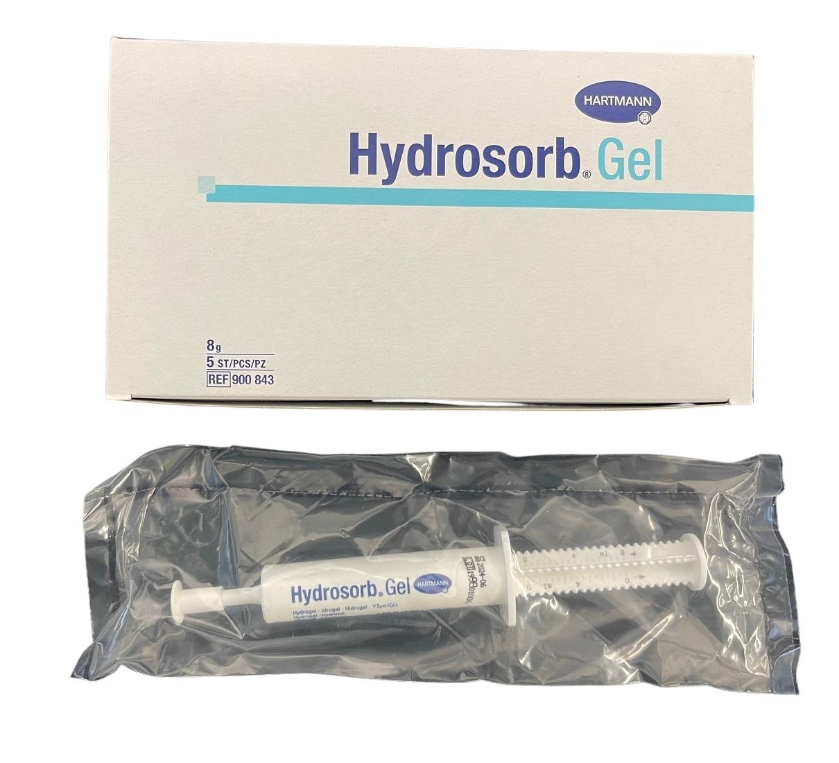 Hydrosorb Gel is a clear, viscous, sterile gel whose components are water with an electrolytic composition. It is individually sealed and for single use. Hydrosorb Gel provides a moist wound environment and supports wound healing. Hydrosorb Gel can be washed away using sterile rinsing solution without disturbing the rest of the wound. Hydrosorb Gel can be used to soften and hydrate dry necrotic tissue, facilitates removal of devitalized tissue and absorbs wound exudate of slightly exuding wounds.