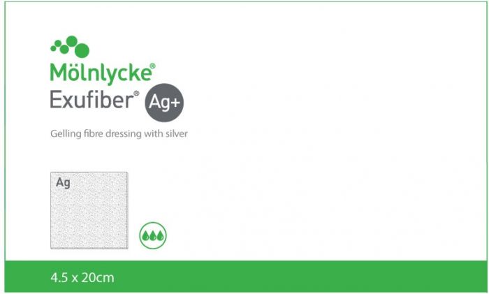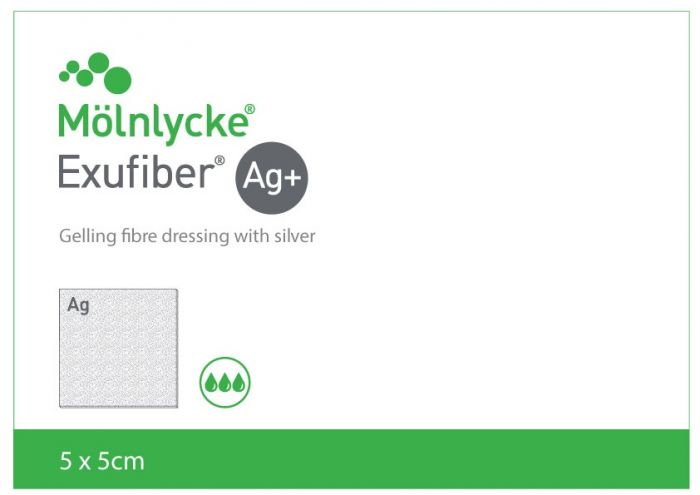 Exufiber® Ag+ with Hydrolock® technology is a sterile non-woven gelling fibre design with an antimicrobial action against a broad range of wound relevant pathogens
