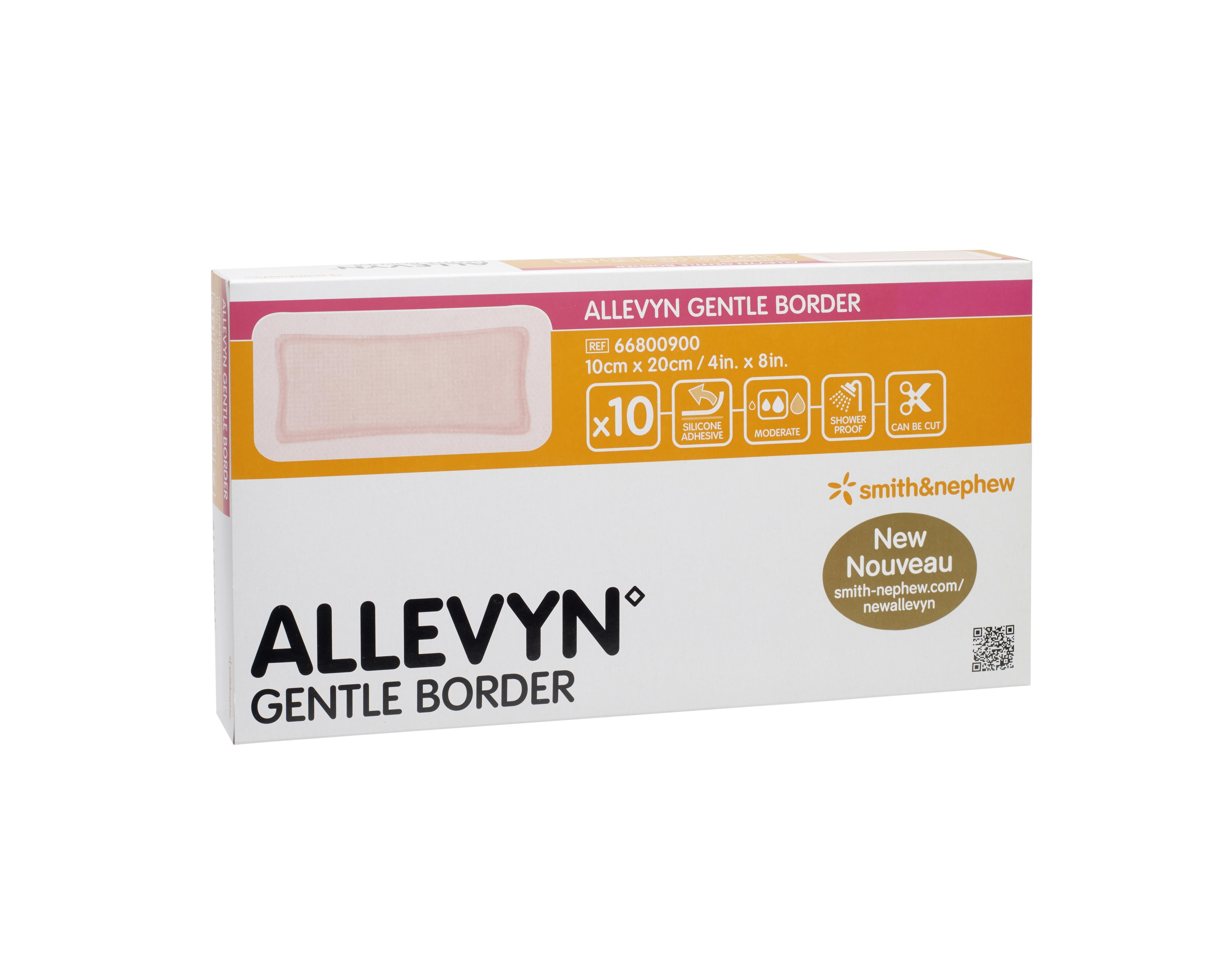Smith & Nephew Allevyn Gentle Border Dressing is designed to suit various wounds and to provide an optimal moist wound environment for individuals who have sensitive or fragile skin. These versatile foam dressings are appropriate for use on wounds that are shallow, granulating, chronically and acutely exudative and fully or partially thick. They can be used on pressure ulcers, leg ulcers, diabetic foot ulcers, surgical wounds, first and second degree burns, donor sites, skin tears and fungating ulcers. Allevyn Gentle Border Dressing is also ideal for preventing ulcers on intact skin such as pressure ulcers caused by medical devices as part of a pressure ulcer prevention protocol.