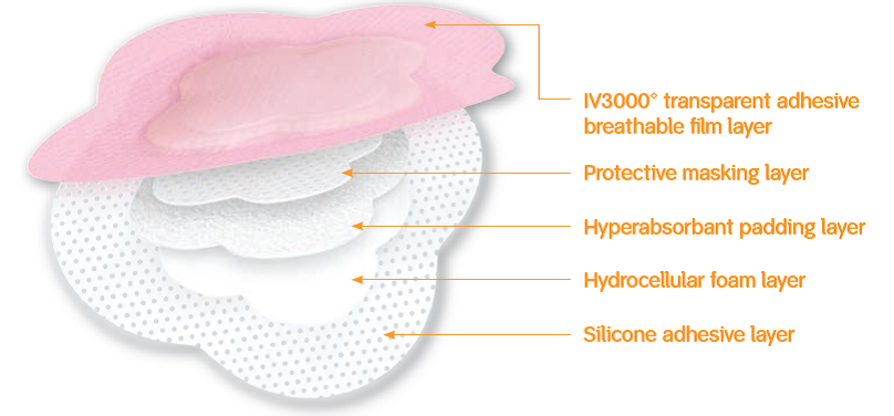 - This dressing has a unique quadrilobed shape and a wide border making it suitable for securely fitting your body contours and for patient showering