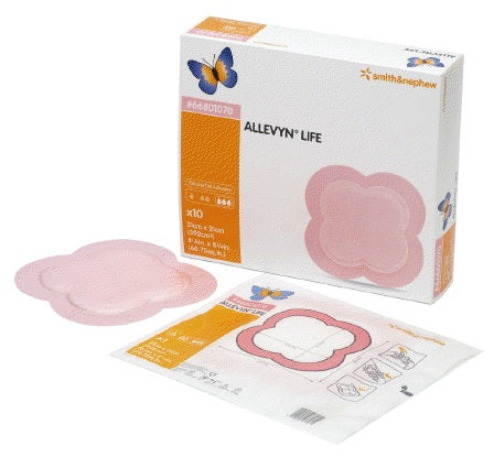 Smith & Nephew Allevyn Life is a multi-layered dressing with hypocellular foam, hyper-absorber lock away core and masking layer designed for managing a variety of wounds and appropriate for your daily use. This foam dressing is used for the management of various wounds including shallow, granulating wounds, acute and chronic exudative wounds, wounds that are fully or partially thick such as pressure ulcers, leg ulcers and diabetic foot ulcers, surgical wounds, malignant wounds, first and second degree burns, skin tears, donor sites, fungating ulcers, infected wounds (the infected wounds should be treated in accordance with local clinical protocol).