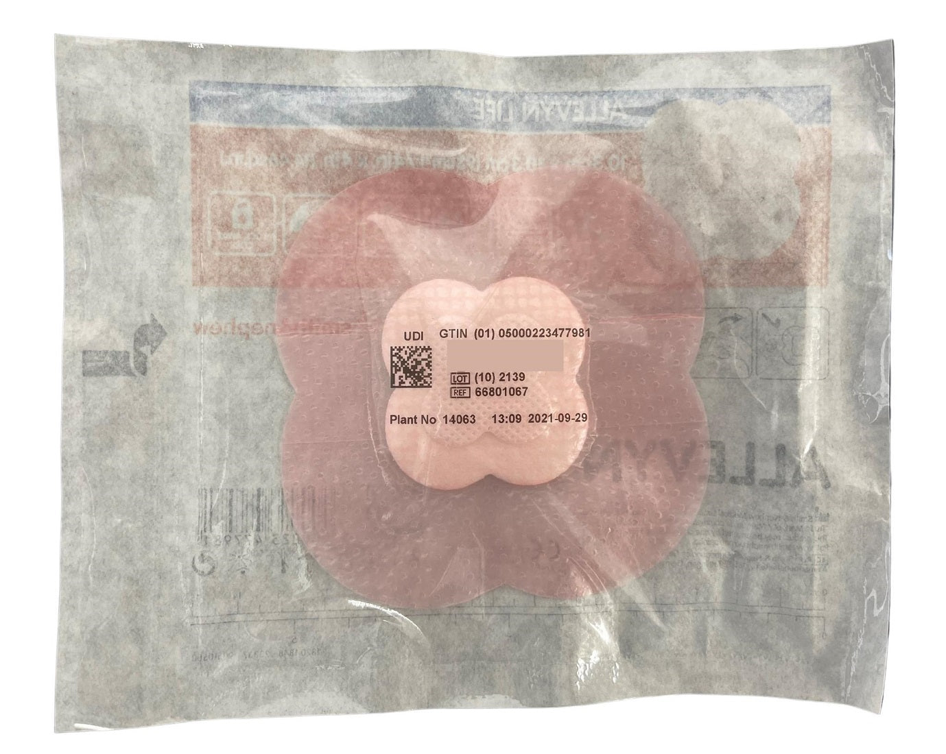 - Use a clean technique to remove one of Allevyn Life's protective films and anchor the adhesive side of the dressing to your skin. Ensure there are no creases by smoothing the dressing over your wound