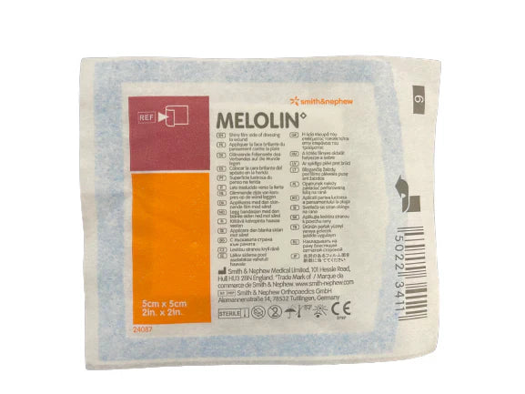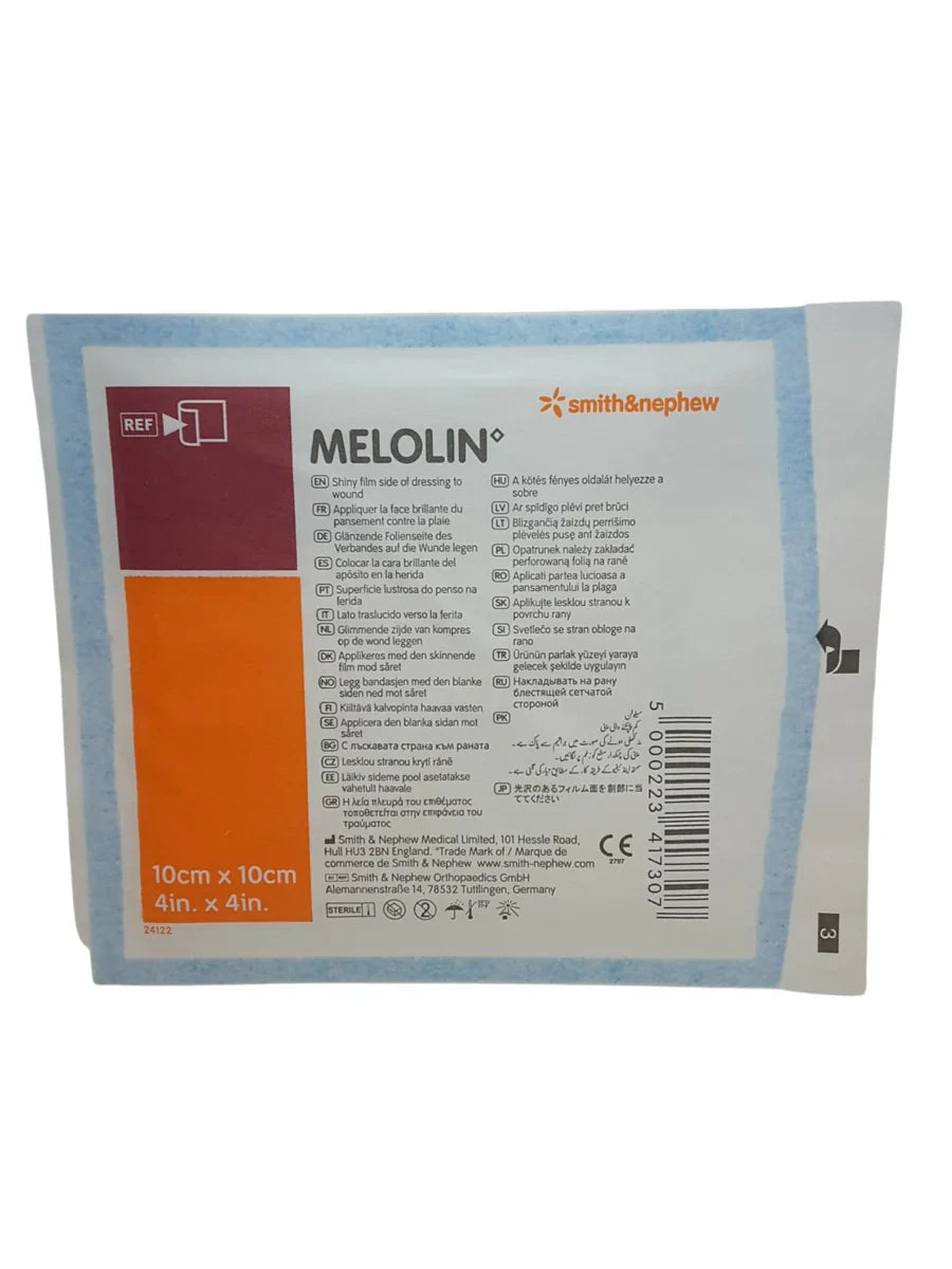 MELOLIN LOW-ADHERENT DRESSING Melolin is a highly absorbent cotton and acrylic fibre pad, which is heat bonded on one side to a very thin perforated polyester film. Melolin dressing features: Non adherent perforated film which allows for rapid drainage of exudate, reducing trauma to healing tissue Cushions and protects to minimise pain on removal Easy to cut to shape, retains its integrity when cut Safe in use, inert and non-sensitising Suitable for post-operative and casualty use including: Clean and sutured wounds Abrasions and lacerations Minor burns.
