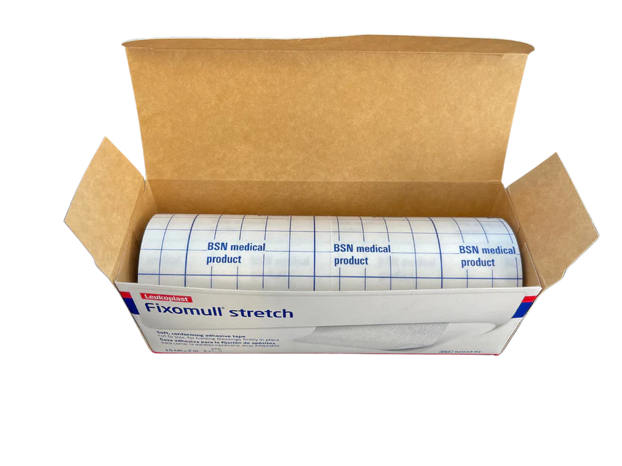 Fixomull Stretch is a wide area adhesive tape, especially suitable for use on frequently mobile and highly contoured parts of the body. Fixomull Stretch can be cut to the required size, which means it can be tailored to protect the entire wound dressing against contamination.